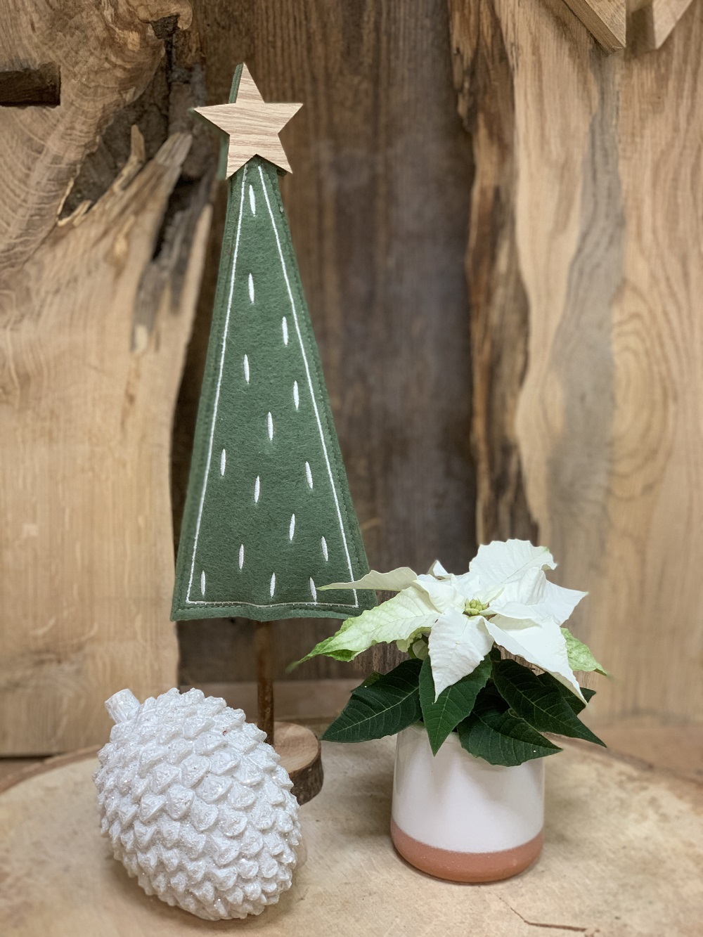 Set (Zapfen, Weihnachtsstern, Baum) auf Holzscheibe